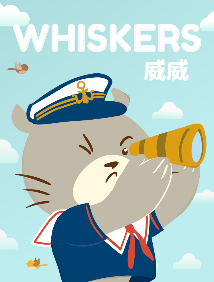 威威對於未來和未知的事物都極有興趣。假如看到有之前未走過的路,他會想去走走,看看能通往甚麼地方。親戚們常對他說,未知的世界充滿危險啊,威威卻覺得未知的世界有著一個又一個冒險旅程,令人刺激而興奮。充滿好奇心的威威很喜歡站在高處,拿著望遠鏡,希望找到新發現。他每天都會從快樂島游出去,很想找到未見過的新事物。